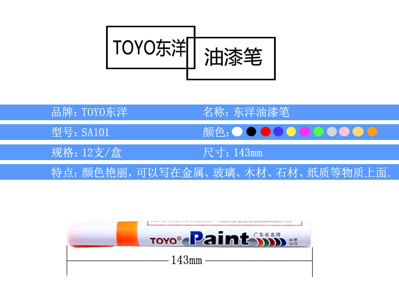 東洋(TOYO) 正品東洋油漆筆 油性漆油筆 輪胎筆 補漆筆 婚慶簽名筆 黑色油漆筆 紅色油漆筆 金色油漆筆 白色油漆筆 白色記號筆